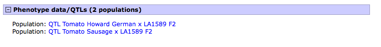 3. After selecting the trait of your interest, for example the trait 'fruit shape circular', you will be taken to the trait (cvterm) page, scroll down to the 'Phenotype data/QTL' subsection. Select the population of interest for which the trait was evaluated. For example, the population 'Howard German x LA1589'.